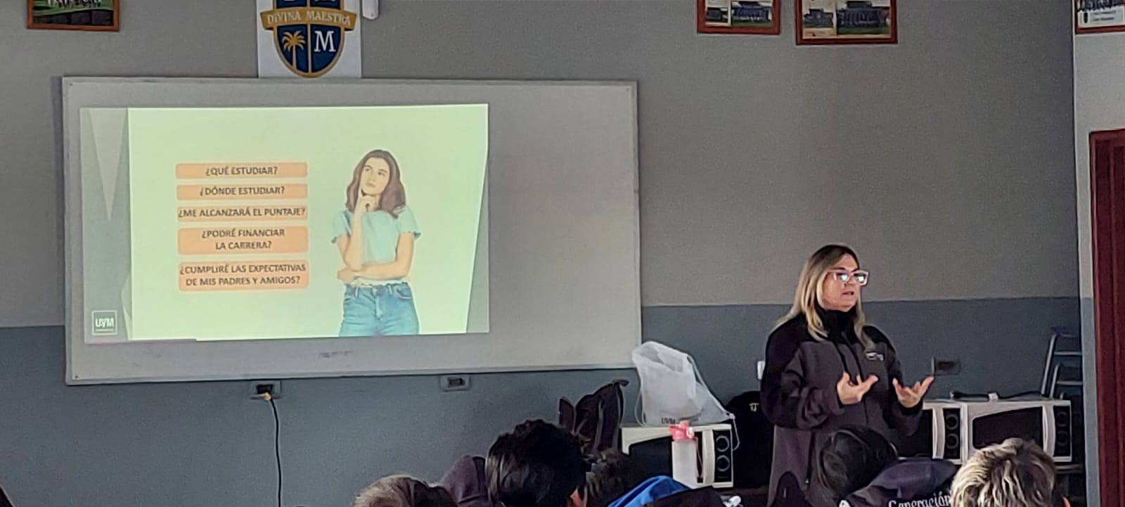 Este lunes 27 de mayo, se realizó la charla informativa y vocacional a los 4° medios del colegio Divina Maestra de Villa Alemana por parte de la Universidad de Viña del Mar, casa de estudios que lleva años apoyando a nuestros estudiantes a través del programa propedéutico y otras instancias. Agradecemos a esta universidad por su gran disposición con la labor de nuestro orientador-profesor Miguel Pacheco Córdova, al programa vocacional interno "Caminando juntos en tu proyecto de vida".